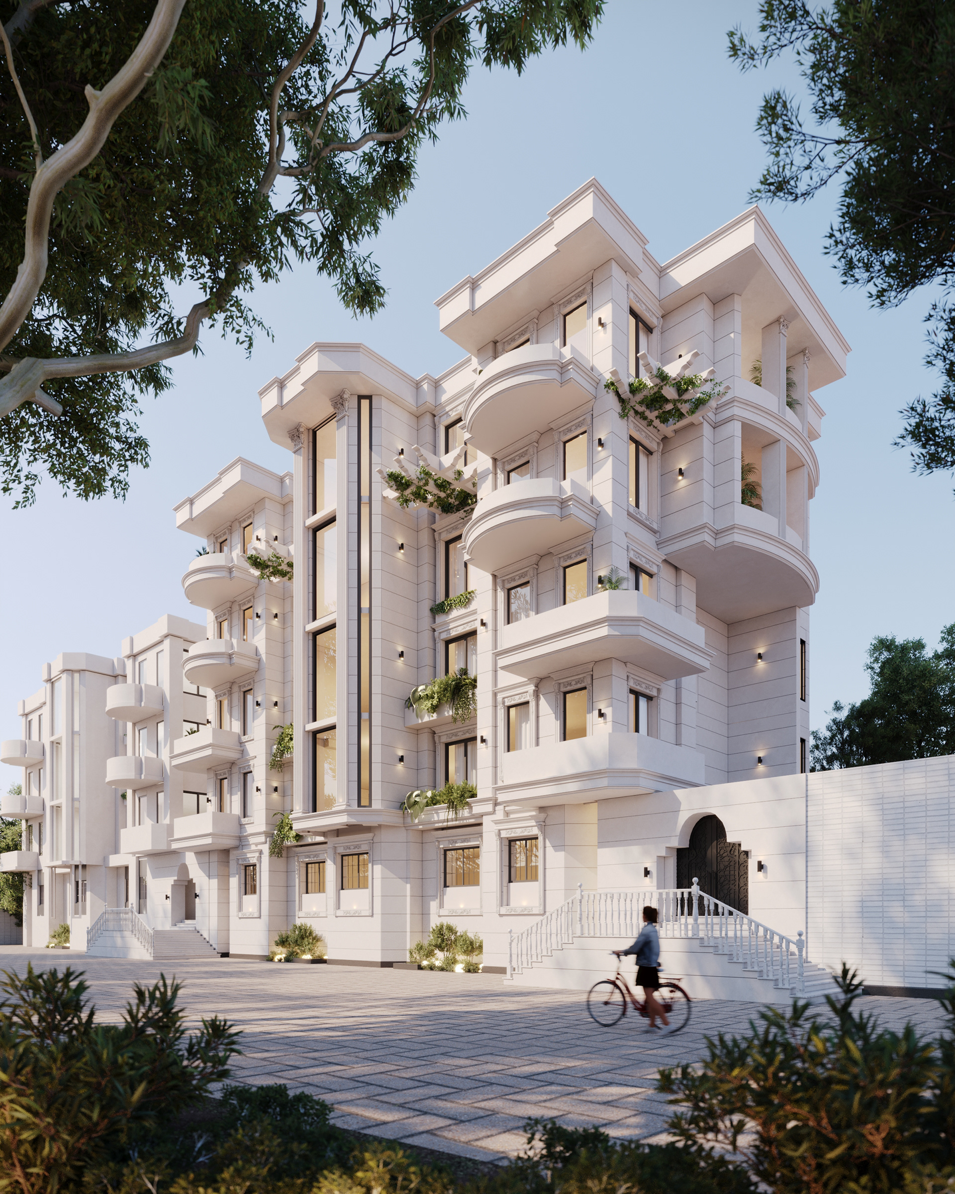 Experience luxury in this stunning 3D visualization! With elegant curves, lush greenery, and modern design, this building blends sophistication and serenity.
